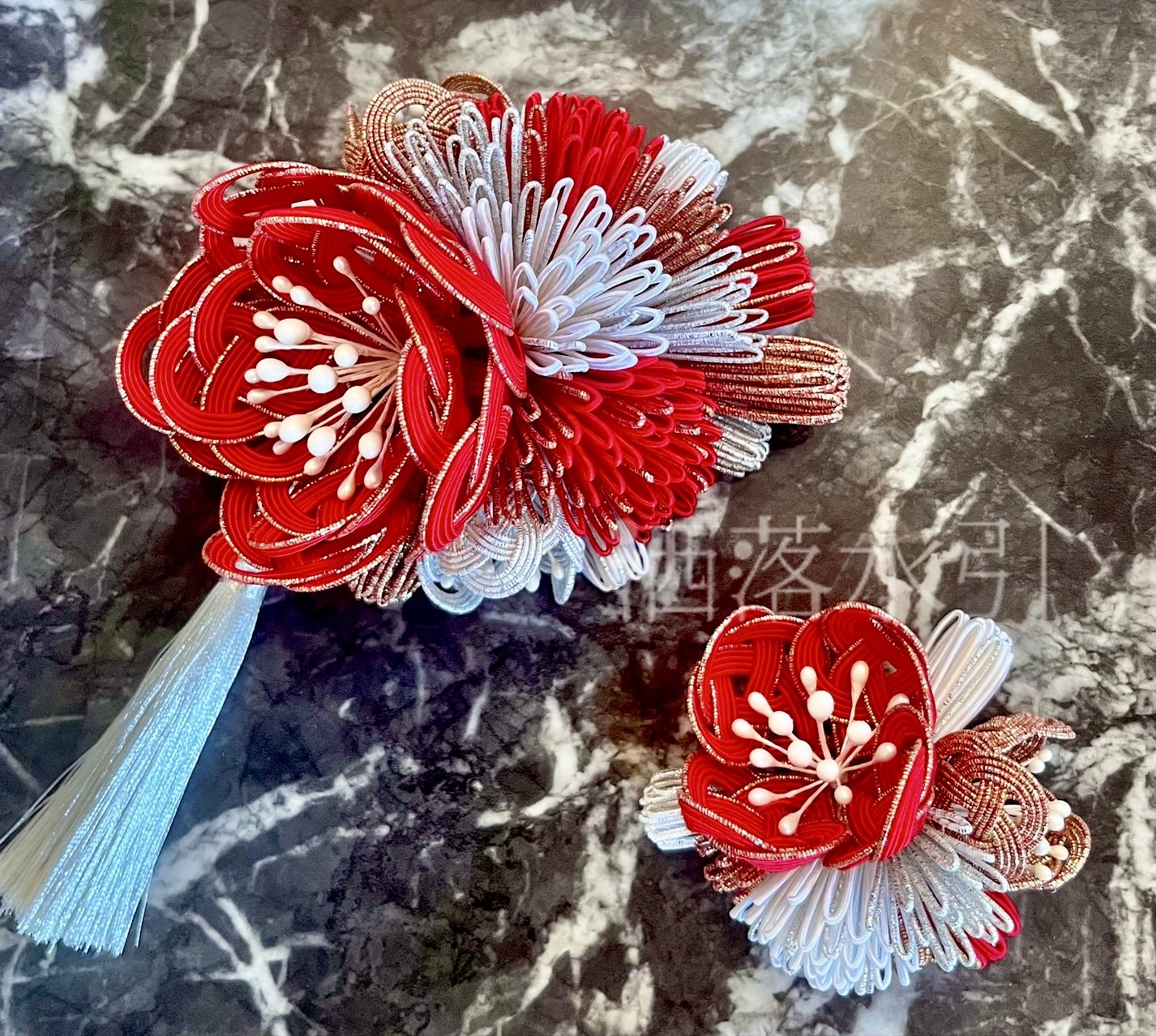 2026年の三越と伊勢丹の振袖カタログに、洒落水引の髪飾りが掲載されました。 掲載品は日本橋三越本店 本館4階 呉服 振袖サロン 及び 伊勢丹新宿店 本館7階 特選きもの にてお取り扱いいただいております。